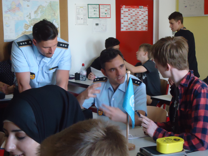 Die Schülerinnen und Schüler des Profilkurses durften sich in die Rollen der beteiligten Länder und Interessengruppen des aktuellen Syrienkonfliktes versetzen. Sie lernten die Vielschichtigkeit der verschiedenen Konfliktebenen kennen und versuchten, in diplomatischen Gesprächen zu einer annehmbaren Lösung einzelner Teilfragen zu gelangen. Das von Jugendoffizieren der Bundeswehr organisierte und geleitete Planspiel offenbarte sowohl seine Chancen als auch die Grenzen dieses realen Konfliktes. Die Schülerinnen und Schüler nahmen ihre Rollen sehr ernst und erkannten, wie schwer es ist, eine feste Position zu verlassen, um zum Wohle vieler Menschen zu einer kompromissfähigen Konfliktlösung zu kommen. Ein Unterrichtstag in ganz anderer Form - spannend, anstrengend und mit vielen neuen Erkenntnissen. Vielen Dank an die sehr engagierten Schülerinnen und Schüler des historisch - geographischen Profilkurses Klasse 10 und natürlich an die Jugendoffiziere der Bundeswehr, die diesen interessanten Tag mit uns gestalteten.